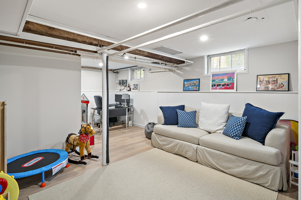 The basement is half finished and can be used as a play area, office, or more! This versatile space is yours to put your mark on while the other half is used as a laundry and bonus storage space with a walk-out to exterior.
