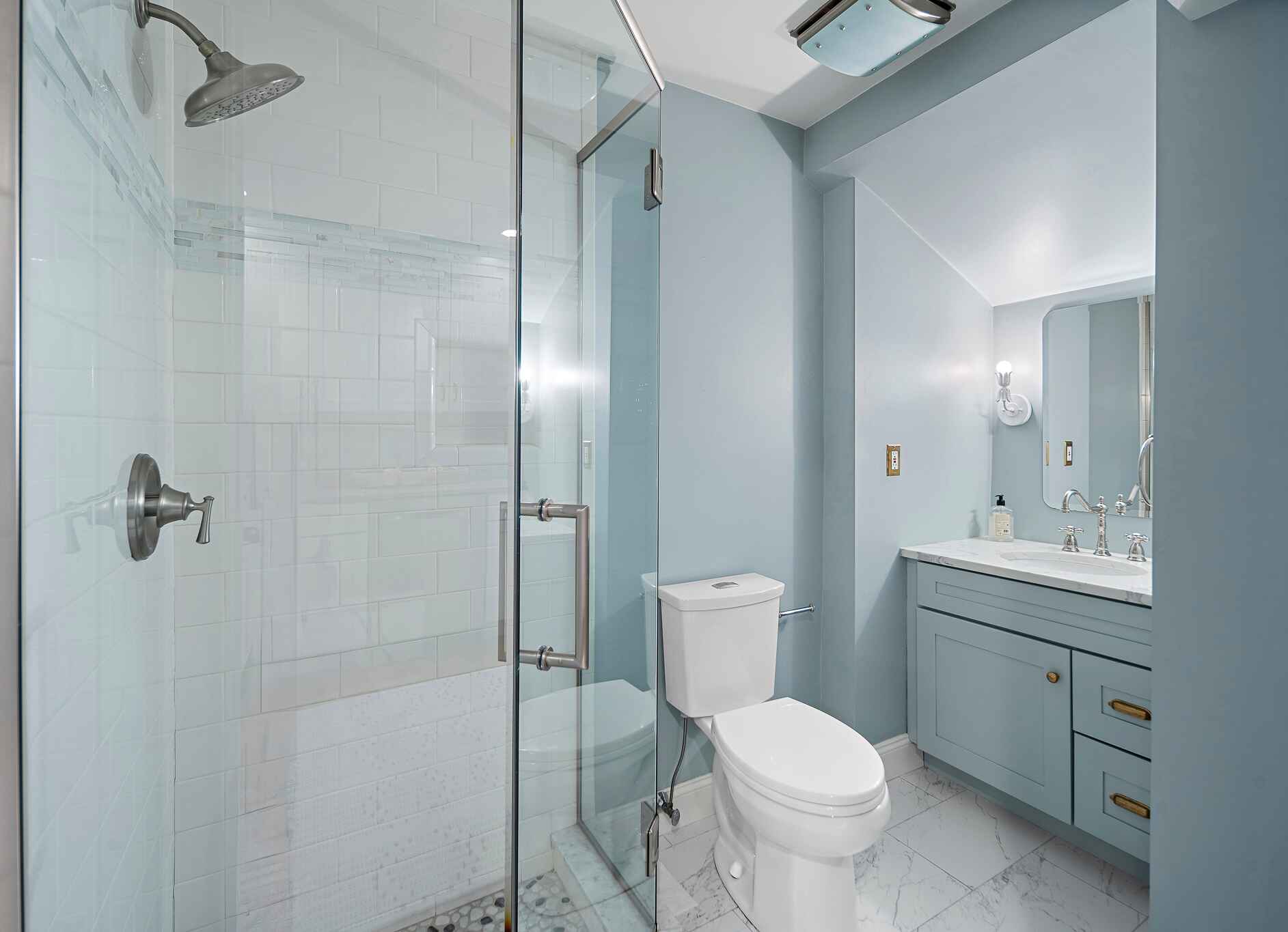 – Designer bathroom gut reno with heated floors in 2021
