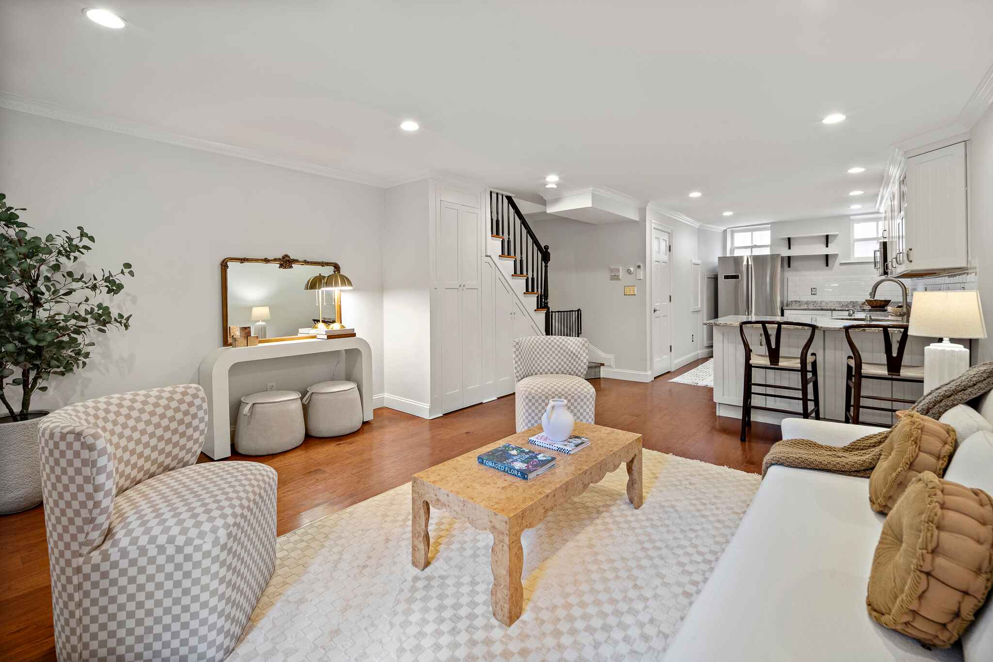 Beautiful 2 bed/2 bath duplex situated in the highly desirable Eight Streets sub-neighborhood of the South End. Open concept lower level features an oversized kitchen with a breakfast bar, expansive living room and a dining alcove perfect for dinner parties. Direct access to the private patio from both living and dining areas give you great flow for indoor/outdoor entertaining. Upper level showcases large primary bedroom overlooking Taylor Park with custom walk-in closet & office area. South-facing guest bedroom, spacious enough for a king bed, also has wall of custom closets. Two full gut-renovated designer bathrooms complete this offering.