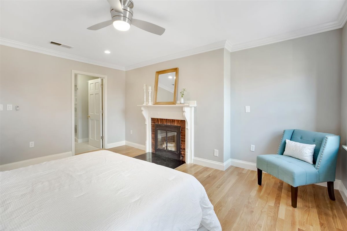 The master suite includes a fireplace plus en-suite master bath. A second bedroom is well configured for a child or guests with a full bath across the hall.  The building is professionally managed with 13 total units, 9 of which are owner-occupied. A direct access parking space comes with this offering!