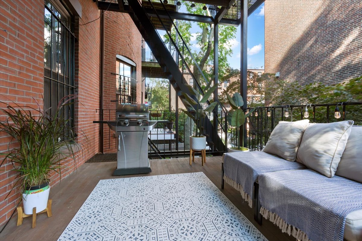 With nearly 11 foot ceilings this is, without over stating it, a spectacular parlor level home. Large windows flood the living room with natural light, highlighting an abundance of magnificent Victorian detail throughout the home. The Chef’s kitchen centers around an island. The stately cabinetry and built-ins frame its entertaining value along with a central fireplace. The two bedrooms face the back of the building in a quiet area without any streets or alleys behind them. The walk out deck off the back exists in its own urban oasis with amazing greenery and brownstone surrounds along with an oblique view onto scenic Concord Square. This unit also comes with an extra storage unit in the basement of the building.