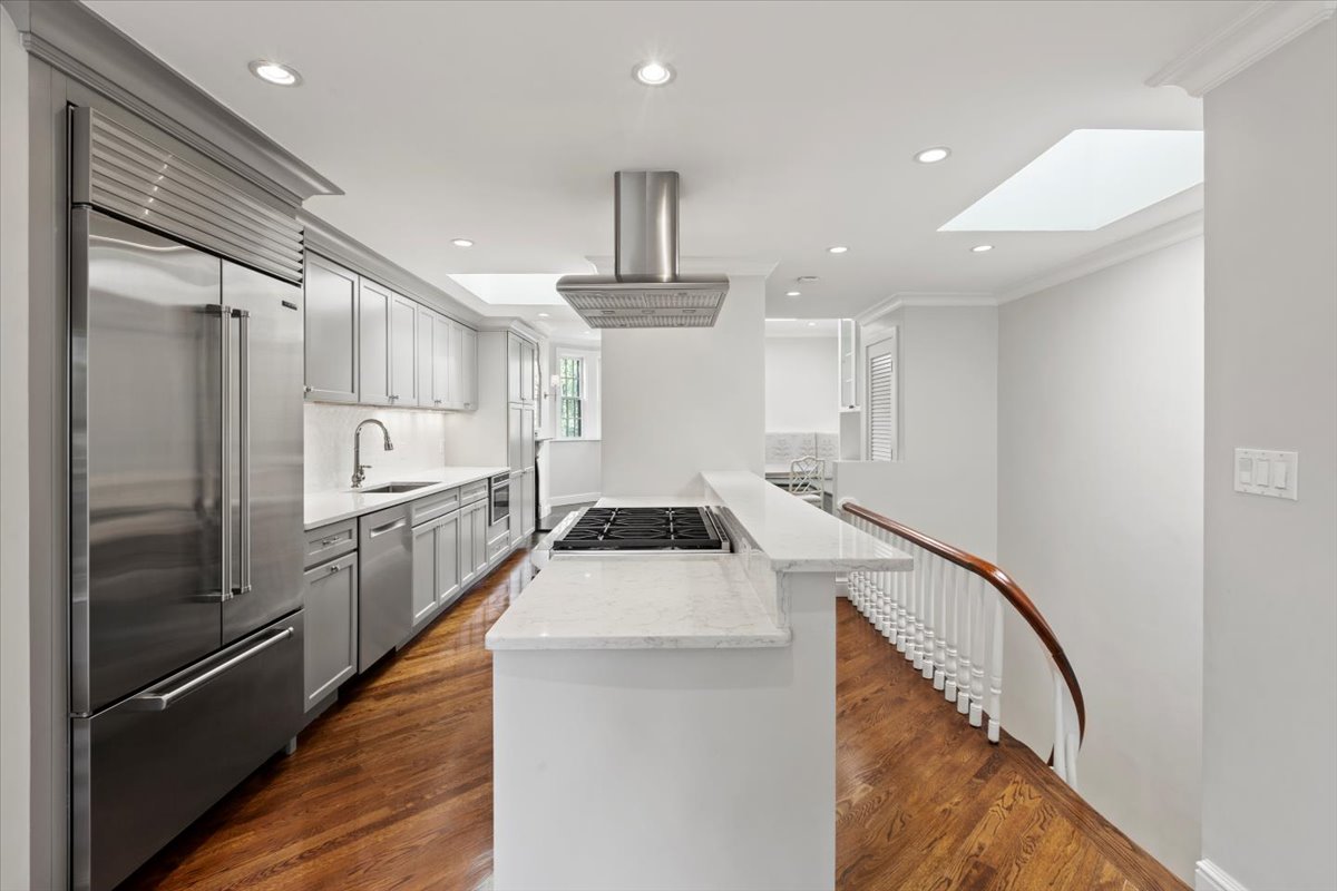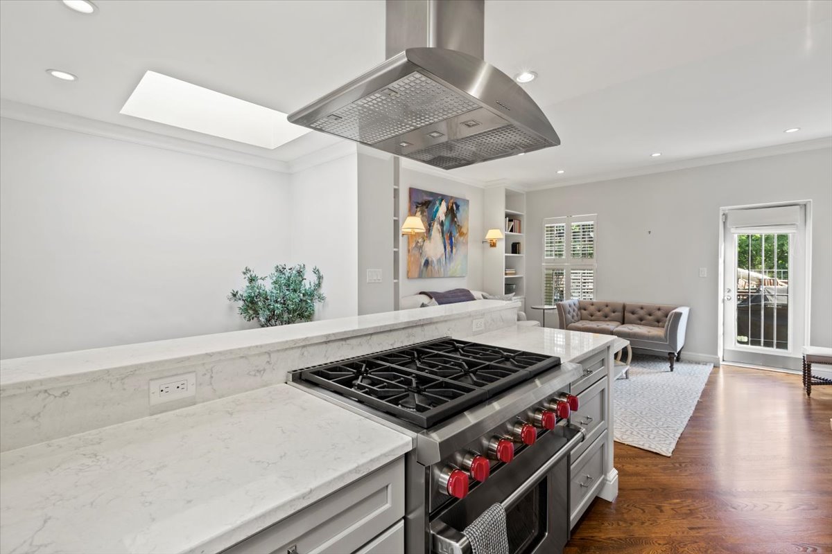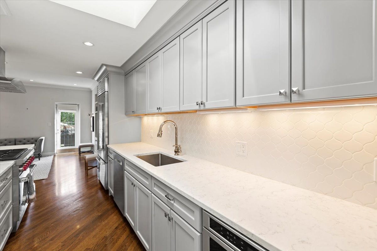 The top floor is the main living level and offers a sweeping open-concept living & kitchen layout with additional space for a built-in dining table. Save the best for last with a generous deck immediately adjacent to the living room that continues up another staircase to a magnificent roof deck with skyline views to die for.