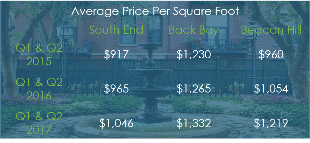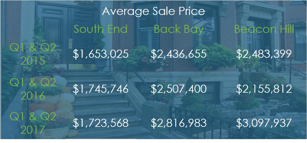 *Beacon Hill pricing increases were driven in large part by a new development at 32 Derne Street. 8 units sold in this complex in the first half of 2017