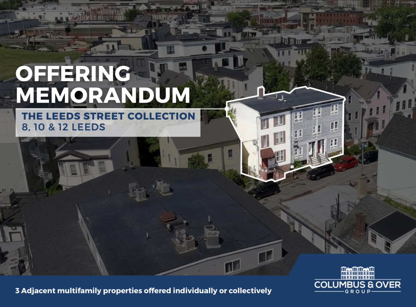 The Leeds Street offering consists of three separately deeded properties: 8, 10, and 12 Leeds Street. Offered both together and individually, this rare assemblage of three redevelopment parcels, with either owner occupant or investor appeal, represents a compelling opportunity to acquire scale at the nexus of connectivity in the heart of Andrew Square.