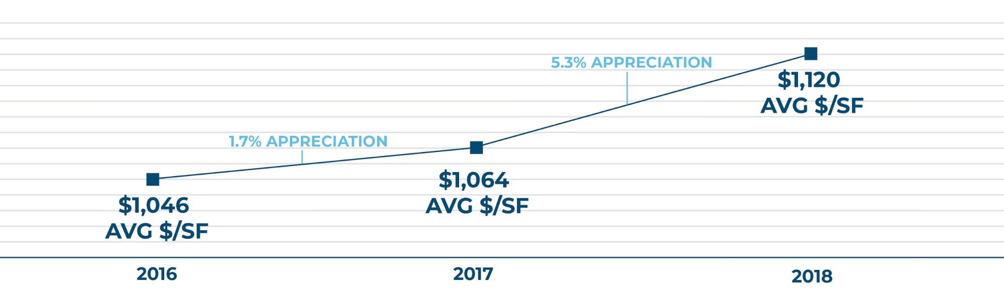 - 6.8 percent price ($/SF) appreciation from 2017 to 2018