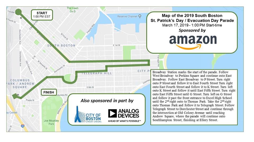 Station and ends at Andrew Square, in South Boston. The best viewing locations for the parade are along Broadway. Marchers continue to Telegraph St