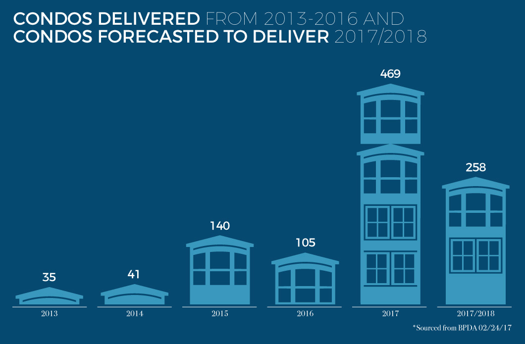 In the early ‘00’s, redevelopment of the Seaport began in earnest. In more recent years the Seaport has welcomed 10 million square feet of development. To date, there are seven luxury condo buildings in the Seaport : 21 Wormwood Lofts (166 condos, 2000), 25 & 35 Channel Center (76 condos, 2004), FP3 Lofts (92 condos, 2009), Twenty Two Liberty (108 condos, 2016), 319 A Street (48 condos, 2016), and Dockside Place Lofts (88 condos, renovated 1982). Three additional condo buildings including 10 Farnsworth, a boutique luxury 9-unit condo building, Pier 4, a 100-unit luxury tower and 50 Liberty, a 120 unit tower, are all scheduled to be completed by 2018.